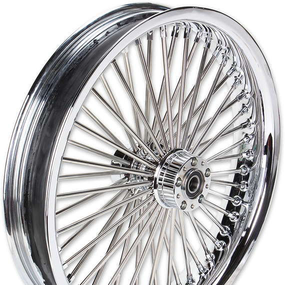 • Wheels feature radial laced (straight) 3/8" polished stainless steel spokes, chrome cold-rolled steel nipples, chrome billet hubs and chrome aluminum softlip rims