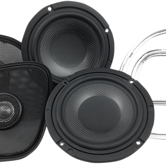Caracteristicas: 4 ohm, 200-watt speakers feature large, vented magnets, studio grade crossovers and carbon fiber cone 1.25" titanium tweeter with custom sound correction reflector cup Designed specifically for the very small factory speaker cabinets Locking barbs secure factory speaker wires No corporate logos on grills One-piece design makes installation a snap