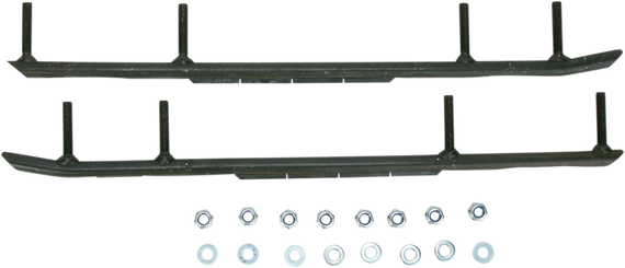 Caracteristicas: An economically priced wear bar for trail performance Features 6” of 60° control carbide with front and rear carbide wear pads Large 1/2” diameter host bar 1” long studs to fit with ski skins Rear of bar has angled cut to ease unloading
