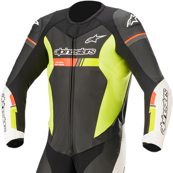 GP Force Chaser 1-Piece Leather Suit - Black/White/Red Fluo/Yellow Fluo - US 48 / EU 58