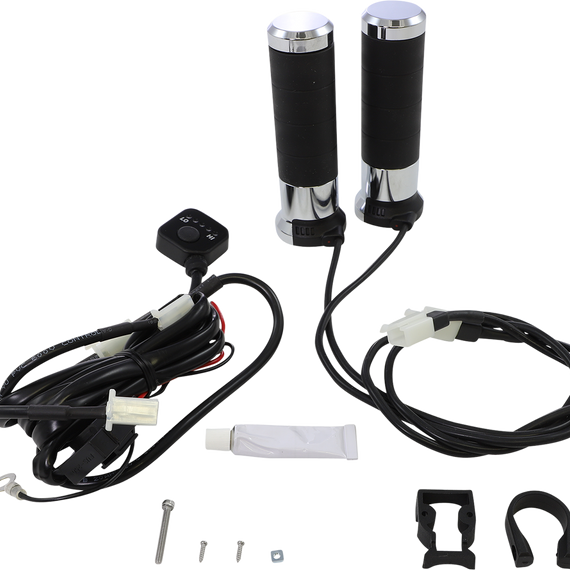Caracteristicas: Five-level temperature controller allows you to adjust the temperature to desired comfort level Made of plated aluminum and special rubber material that is resistant to outdoor conditions and elevated temperatures Thin and flexible silicone wires make them easy to install Provides ƒ??short circuit protectionƒ?� and ƒ??low voltage protectionƒ?� technologies Internal memory that allows the grips to stay at previous warmth level
