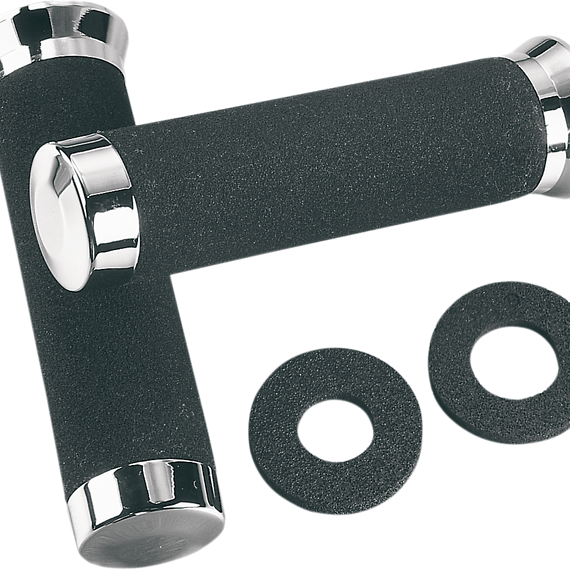 Caracteristicas: Grips feature denser foam for a firmer feel and longer-wearing performance Sleeves are molded thermoplastic; covers are luxurious neoprene Resistant to perspiration, gas and oil Black with chrome end caps