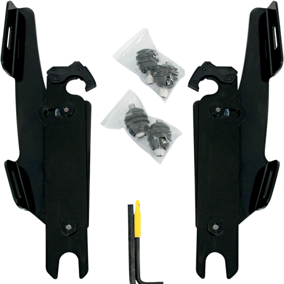 Caracteristicas: Angle Adjustable Model specific no-hassle installation, then on-off without tools. A pair of glass-filled nylon latches lock it down until the spring loaded "Trigger-Locks" are intentionally disengaged. Made exclusively of electrocoated aluminum and stainless steel, with stainless steel fasteners. Anchoring hardware is the same for all windshields and fairings for each bike. Made in the U.S.A. - Made in Memphis!