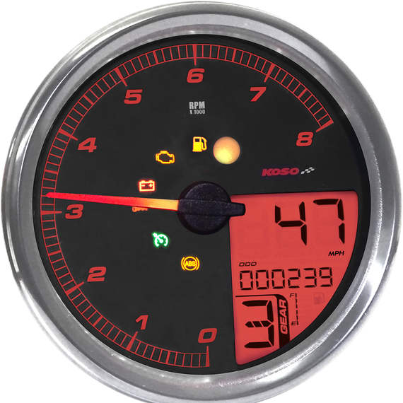 Caracteristicas: High-quality plug-n-play design Eight-color changing display Features tachometer, speedometer, odometer, engine temperature and fuel level Six indicator lights; rpm, fuel, engine, battery, cruise control, ABS and anti-theft Measures 45/8” diameter Fits models that use 5” stock mounting cup.