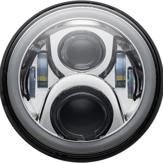 Caracteristicas: Features projection style high and low beam with advanced optical D lenses for a smooth, bright white beam pattern and superior field of vision Headlamp automatically keeps low beam LEDs illuminated when high beam is activated Included mounting ring makes for an effortless installation with H4 connector 6000K color temperature HIGH BEAM: 3620 LM, 3.6 AMPS at 12V LOW BEAM: 2480 LM, 1.8 AMPS at 12V DOT/SAE compliant