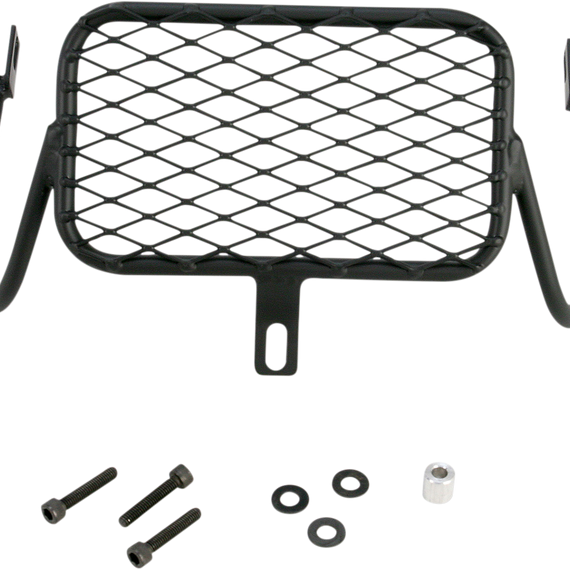 Caracteristicas: Fabricated from mild steel and expanded metal This guard will protect the headlight from flying debris Powder-coated flat black Light weight with limited reduction in light output Easy installation with all required hardware provided Made in the U.S.A.