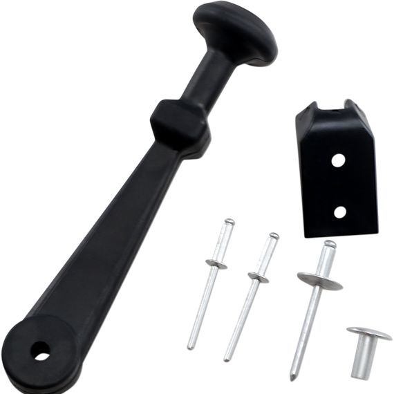 Caracteristicas: Gives more security by attaching in the center side of the hood to hold it in place even if the snowmobile rolls Works well to attach quick removal hoods Can be used for quick-remove hoods and on race sleds in which additional tie-downs are required Kit includes one tie-down, one hook, one cherry mate and rivets