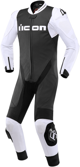 Caracteristicas: 1.1-1.3mm TracSpec™ leather chassis that uses the same grade leather as high-end road race suites Reinforced perforated vent zones keep you cool when the riding gets hot Four-way stretch material and accordion paneling in the flex zones ensure a comfortable and contoured fit in a full tuck position Integrated Thermoplastic Polyurethane (TPU) speed hump, shoulders, elbows and knee caps Full suite of removable D3O® impact protectors at shoulder, elbow, back, hip and knee Neoprene wrists and ankles are designed for ease of use and reduced cuff bulk Removable, washable liner allows you to keep your gear smelling fresh Replaceable nylon knee pucks; replacement knee puck also available, sold separately OG TPR chest logo Icon® Attack fit with tailored body and precurved arms