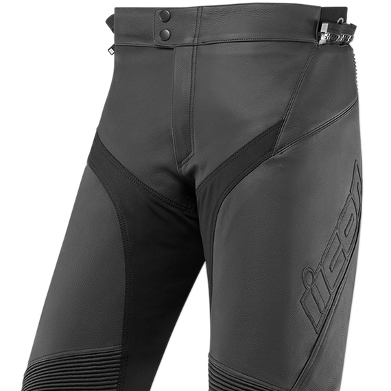 Caracteristicas: Icon® attack fit 1.1-1.3mm TrackSpec™ leather chassis D30® impact protectors - hip, knees Integrated flex zones, elastic waistband, replaceable nylon knee sliders, waist zipper for attaching Hypersport 2 Jacket (sold separately)