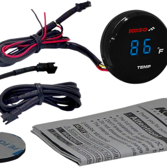 Caracteristicas: Compact, easy-to-read digital display Display range 32-248° F Flashes warning when temperature exceeds 248° F Measures 1.57" diameter x .43" D Power DC 12 V
