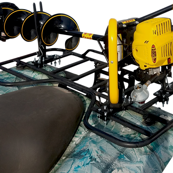 • This carrier mounts to the ATV's rack to keep the ice auger from rolling around and protect the blade's edge and the finish on your rack