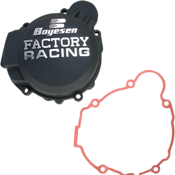 Caracteristicas: Look like a professional with the Factory Ignition Cover Seals properly, guarding inside of engine from dirt and water and outlasts stock covers Boyesen Factory Covers are cast from the highest grade of aluminum and are strong yet lightweight Super-tough, powder-coated finish resists weathering and wear and tear OEM paper gaskets can be reused, or use the supplied O-ring