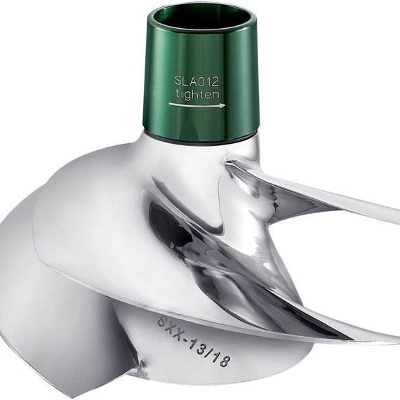 Caracteristicas: This unique impeller enhances all-range maneuverability with no slippage in water hookup Variable pitch offers both low-speed torque and all-out high speed in one impeller Exclusive hub-end water seal keeps the nasty stuff out of precious parts Constructed of ultra high-strength, corrosion-resistant stainless steel Mirror-smooth finish and polished hub resists cavitation Impeller pitch is determined by casting, not bending