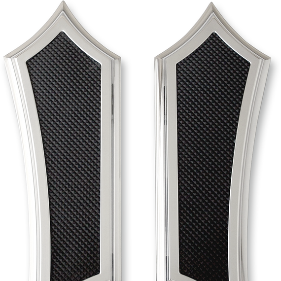 Caracteristicas: Give a custom look Floorboards machined from 6061 T-6 billet aluminum Boards extended 1" further forward and rear than stock boards; are 1-3/8" wider than stock Feature multi-directional non-slip black Pyramid Top rubber inserts Install using stock mounts and hardware Made in the U.S.A.