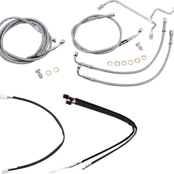 • Kits include extended brake line, extended clutch cable/clutch line, extended throttle/idle cables as required and all necessary wiring