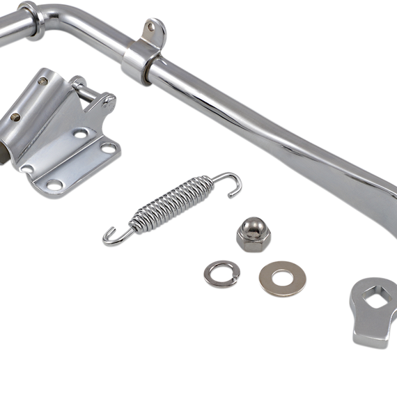 Caracteristicas: Complete kit includes a one-piece polished chrome mount with spring tab, kickstand, leg stop, spring and nut Mounting repair kit available; includes mount, spring, leg stop and nut (sold separately) - see Related Products Mounting bracket only may be purchased separately - see Related Products