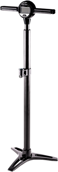 Caracteristicas: Magnetic hose attachment Hidden hose in the body of the floor pump Quick connect for gauge to be mounted to pump Hose is magnetically held inside the pump Foot-activated high-pressure/high-volume switch Tripod base for added stability Universal head for Presta / Schrader (fully threaded Presta valve bodies only) Large, accurate digital gauge 160 PSI / 11 bar