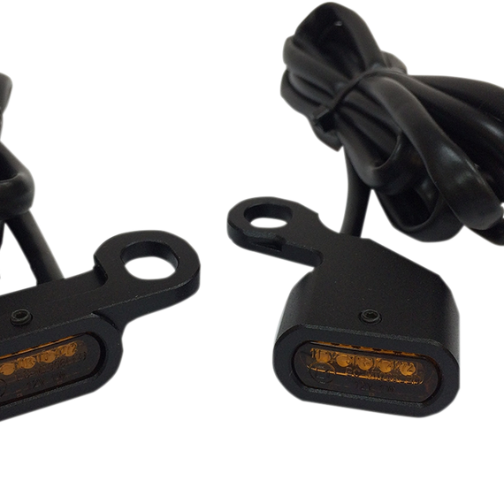 Caracteristicas: Feature billet aluminum housings Measure 1" wide x 1/2" tall Single-function high-intensity amber LEDs with amber or smoke lenses Wire leads are 36" long Can be mounted using the mirror stems or mirror stem mounting bolts