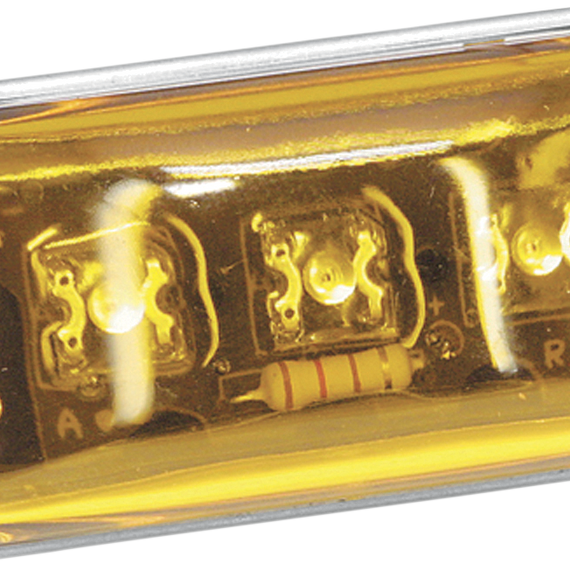 Caracteristicas: Single-wire, LED marker/clearance light Stud mounted with 1/4" hole Measure 2 1/8" W x 1 1/8" H x 1 1/16" D