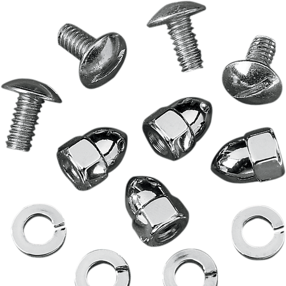 Caracteristicas: Each set includes four bolts, complete with custom acorn nuts Excellent for mounting license plates onto motorcycles Made in the U.S.A.