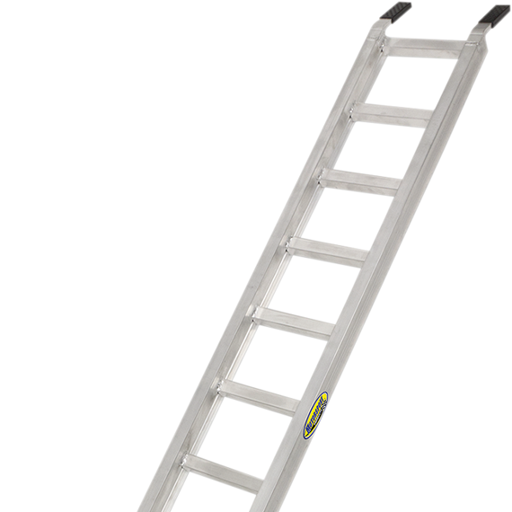 Caracteristicas: Shorter than typical ramps, so it's great for vehicles with lower loading heights Easily fits in vehicles with limited-length loading areas, such as short-bed trucks, race vans with wall partitions, etc. Lightweight at only 6 lbs. Made of 2” X 1” extruded aluminum box tubing with 1” square ladder style rungs spaced 6” apart, creating a super strong frame 8.5” wide channel with raised edges helps keep bike from steering off ramp when loading or unloading Two rubber-coated strong metal tongues rest on vehicle when loading and help prevent slipping or scratching vehicle Do not ride motorcycle on ramp at any time.