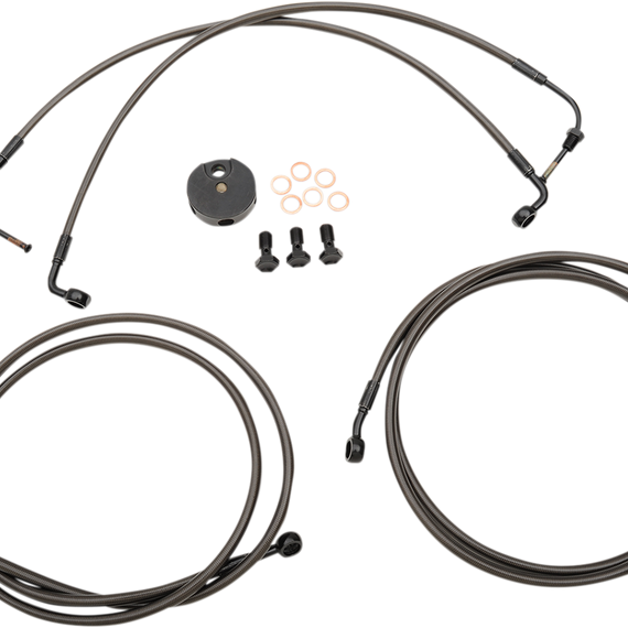 Caracteristicas: Include stainless steel brakes, cables and lines covered in a black smoke tinted coating with pure black fittings throughout; lines appear graphite or carbon fiber in appearance providing that ultra custom look and the black fittings seamlessly blend with blacked out controls and covers on the bike Take "cable calculation" headaches out of swapping handlebars Made in the U.S.A.