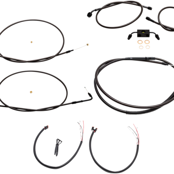 Caracteristicas: Kits include the correct length braided brake/clutch lines and wire extensions to complete a handlebar swap Black "T" brake line junction, banjo bolts, fittings and copper crush washers included Made in the U.S.A. Kits are based on using 2" risers with Ape Hanger handlebars