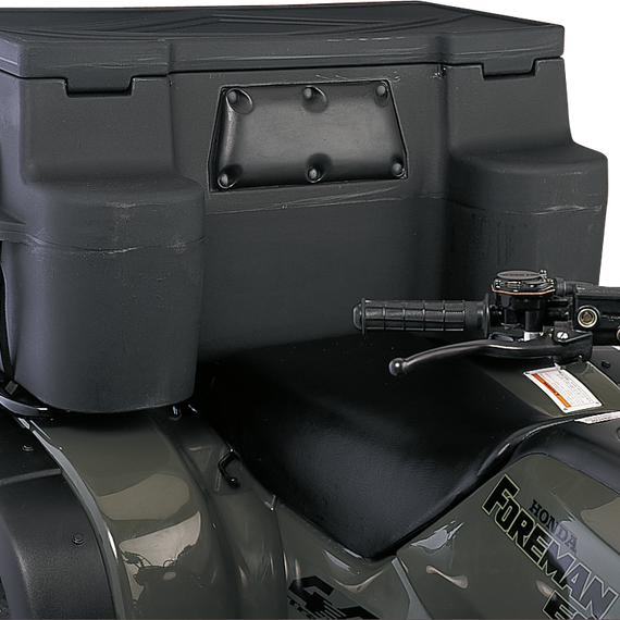 Caracteristicas: Made from easy-to-clean, high-impact-resistant polyethylene UV-stabilized Large 12" opening will fit chainsaw, helmets, etc. Urethane molded back pad U-bolts for permanent mounting; six tie-down straps for temporary mounting Measures 37" x 23" x 18" Available in black with black pads