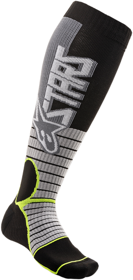 Caracteristicas: Designed to be worn with Alpinestars range of Off-Road boots, the MX Pro Socks are breathable and comfortable, thanks to the reinforced padded support and the rib construction, which enables enhanced levels of stretchability. Single layer construction for high levels of breathability and comfort Moisture wicking construction throughout Mesh construction for optimized levels of airflow Reinforced protective padding on the ankle Rib construction for enhanced stretchability Reinforced padded support for optimized rider comfort, on and off the bike