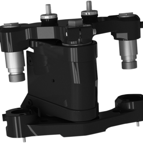 Caracteristicas: Manufactured from 6061-T6 billet aluminum and 4150 high-strength steel alloy Bolt-on 26” wheel installation Secure attachment and unmatched strength Proven press fit technology Compatible with factory suspensions using stock clearances Exceptional frame clearance, handling and stability Includes Black anodized Triple Tree Neck Kit, hardware, and installation instructions Raked necks change the handling characteristics of the motorcycle. Use caution until familiar with the changes.