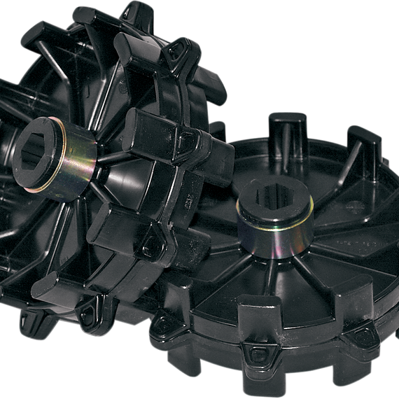 Caracteristicas: Specifically designed for less rotating mass Built to drive off of four track lugs and track clips at the same time (on full windowed tracks only) Extra involutes are eliminated with these sprockets Some models will require the front of the slide rails to be shortened for clearance. It is recommended that the skid frame be installed without the springs and cycled to check rail tip clearance.