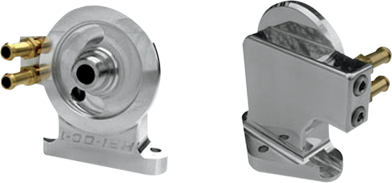 Caracteristicas: 6061 billet aluminum construction with a polished finish Optimized oil passages flow almost 30% more efficiently than others on the market, which means less oil pressure drop and cooler temps Designed to be used with any aftermarket oil cooler Made in the U.S.A.