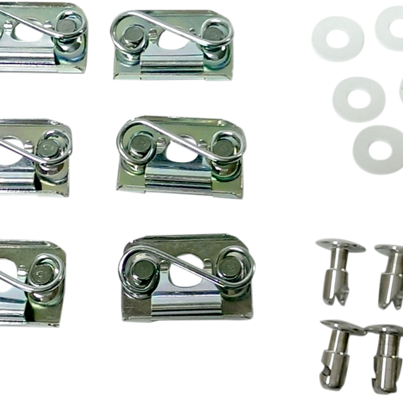 Caracteristicas: Takes the guesswork out of mounting both racing fiberglass or ABS replacement bodywork Includes all the necessary hardware to do the job right the first time around Each kit contains six fasteners and all supporting hardware including anti-scratch washers, rivets and springs or clips