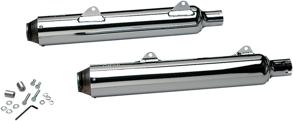 Caracteristicas: Mikuni's Joe Minton designed these hot slip-on mufflers that provide maximum performance when used with the Mikuni P.A.T. System Muffler contains a special straight-through core for the least-restrictive exhaust flow that produces more power and a blood-churning sound Core is wrapped with Silent Sport™ packing for superior sound and greater durability than ordinary fiberglass End caps sold separately Made in the U.S.A.