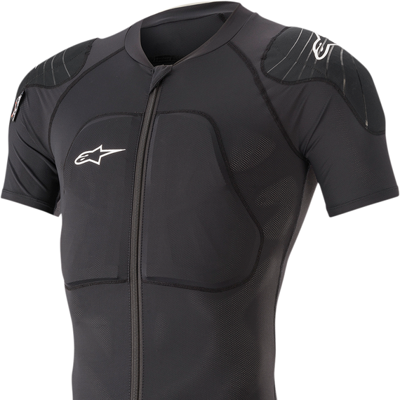 Caracteristicas: Lightweight, flexible design with impact and high abrasion protection Triple segmented back shell plate is constructed from a high performance polymeric material blend for flexibility and weight saving properties Back protector’s microstructure cell is designed for advanced energy absorption, adaptivity, maximum breathability and airflow Horizontal flexion grooves for an adaptive fit in different riding positions Breathable mesh sleeve Abrasion resistant fabric front panel