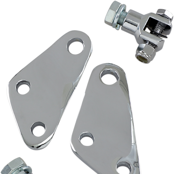 • Chrome passenger footpeg mounting plates and clevis replace the rear footrest brackets