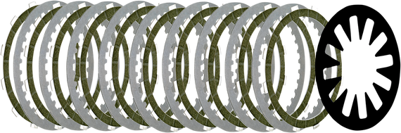 Caracteristicas: Plates have 11% more surface area for more positive clutch engagement - ideal for big-bore models Pre-measured stack height for easy installation Made in the U.S.A.
