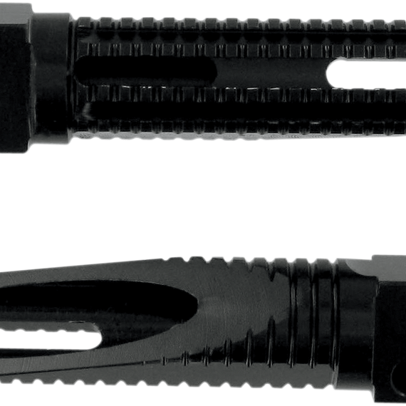 Caracteristicas: CNC-machined from 6061 T-6 billet aluminum; replace stock footpegs Lighter than stock, slash cut for greater ground clearance; have machined, not knurled, grooves for better grip