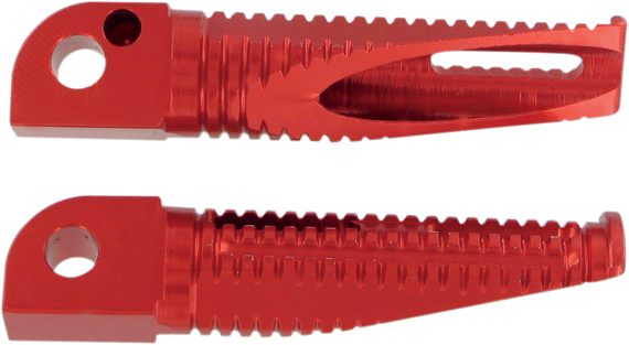 Caracteristicas: CNC-machined from 6061 T-6 billet aluminum; replace stock footpegs Lighter than stock, slash cut for greater ground clearance; have machined, not knurled, grooves for better grip