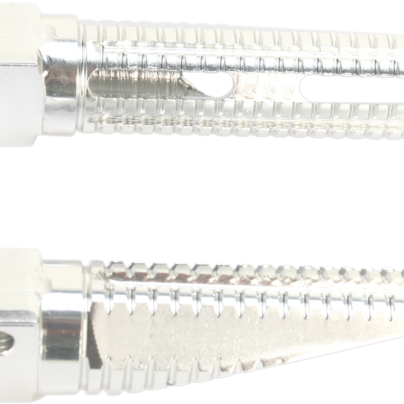Caracteristicas: CNC-machined from 6061 T-6 billet aluminum; replace stock footpegs Lighter than stock, slash cut for greater ground clearance; have machined, not knurled, grooves for better grip