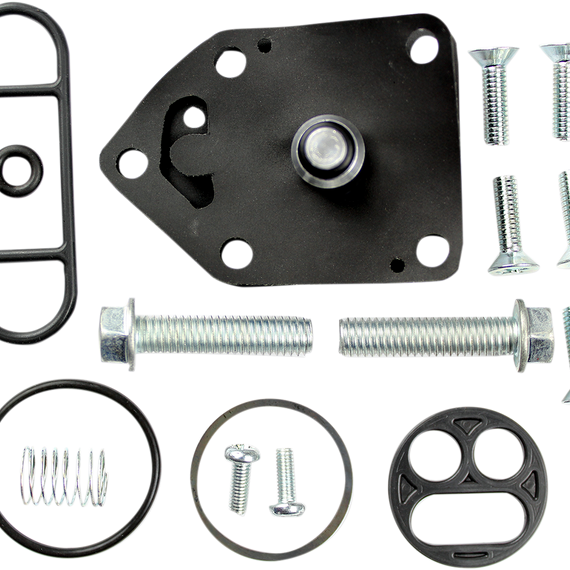 Caracteristicas: Includes components to rebuild one Fuel Tap Kits includes all necessary face screws, tank bolts, face gasket, tank gasket, diaphragm, o-rings, wave washer, and misc components Non re-buildable riveted Honda specific Kits include special drill and self-taping screws along with instructions for easy and inexpensive rebuild
