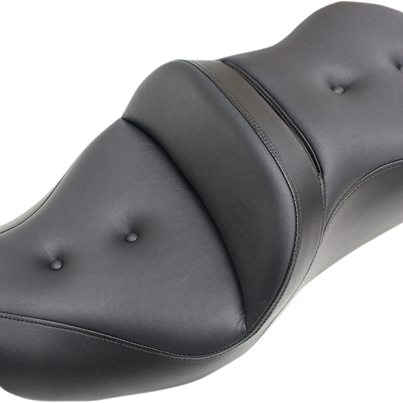 Caracteristicas: Refined split-cushion design separates the seating surface from the lumbar support to reduce tailbone/back pressure for maximum long-range comfort Seat features a combination of progressive density foam and SaddleGelƒ?½ inserts for superior driver and passenger comfort Pillowed soft upholstery cover backed by a compliant foam layer under the cover to provide incredible comfort and style Classic styled button-tufted cover Made in the U.S.A.
