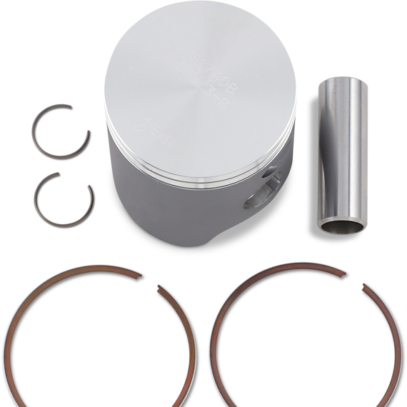 Caracteristicas: Two-stroke pistons are made from 4032 silicium Four-stroke pistons are made from 2618 silicium - the same material used to produce Formula 1 pistons Both include 3% copper in materials for better heat resistance All pistons are forged using a precision heat-treatment process that allows for production tolerances of just .005mm Forged piston tooling allows for the lightest available product Kits include antiwear coated piston, rings, pin and circlips