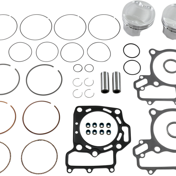 Caracteristicas: Feature forged pistons, rings, wrist pins, circlips and top end gasket set Contain all the necessary components for overboring or rebuilding your top end