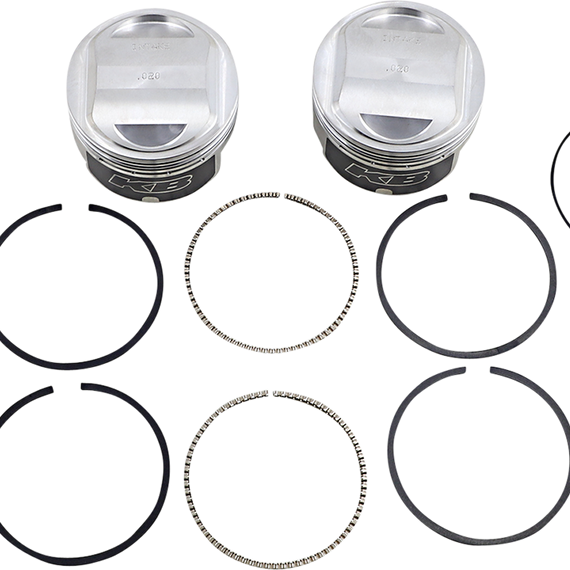 Caracteristicas: Manufactured from high-strength, T-5 heat-treated, 390 hypereutectic aluminum alloy Allows a tighter fit and longer piston and ring life Diamond-machined pistons are held to plus or minus one gram weight and less than one-half-thousandth-inch (.0005") tolerances from piston to piston Each kit contains two pistons, pins, spiral-lock pin clips and Hastings moly rings Replacement piston rings sold separately KB pistons can be installed tighter than other pistons. This results in less piston rock and better ring seal. Please read instructions included with piston for correct piston clearance Due to the thermal conductivity and design of KB pistons, special attention is required to the top ring end gap. Please read instructions furnished with piston for correct ring installation Use lock rings Part #0913-0001 (4-pk)