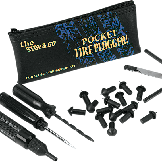 Caracteristicas: Easily installs mushroom-shaped rubber plugs into all tubeless tires on the wheel Plugging device drives the plug into the hole with a twist of the Allen wrench; plug then expands under pressure to fill the punctured area; a firm pull on the stem seats the mushroom head on the inner wall allowing no air to escape Includes plugging device, nozzle adapter, rasp tool, probe tool, retractable razor blade, Allen wrench, 15 mushroom plugs (5/16" diameter x 3/4" L stem), laminated instructions and comes in 3-1/2" x 7-1/2" zippered pouch; total weight only 12 oz.