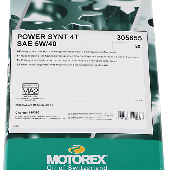 Caracteristicas: Fully synthetic, high-performance 4-stroke sport motorcycle oil Racing quality Provides optimum wear protection and extreme thermal and shear stability Catalytic converter tested; optimized clutch performance according to JASO MA Specifications: JASO MA 903:2006/API SM, SL, SJ, SH, SG