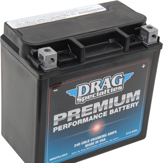 Caracteristicas: AGM (Absorbed Glass Mat) separators with superior grid and component designs allow Drag Specialties to offer one of the most powerful batteries in the industry Improved charge recover capability from a deeply discharged condition Longer shelf life Improved life cycle performance Extreme vibration resistance Factory-activated, spill-proof design Upgrade for customized motorcycles requiring the best performance Made in the U.S.A.
