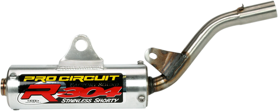 Caracteristicas: Full-race two-stroke silencer The compact design of the short aluminum canister offers optimum performance gains and is recommended for closed-course racing only Hex head screws are used to secure the inlet cap and can be removed easily for quick re-packing of the silencer 304 stainless steel intake tube Double-walled mounting bracket(s) Tig and mig welded for strength and durability E-Glass internal packing for maximum packing life Made in the USA
