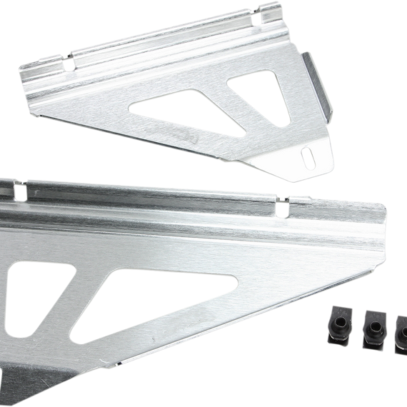 Caracteristicas: High-grade U.S. aluminum alloy CNC technology creates custom fit Mounts directly to frame/radiator Multi-point triangle design Simple installation Brushed aluminum finish Includes all hardware for easy installation 100% Made in the U.S.A.